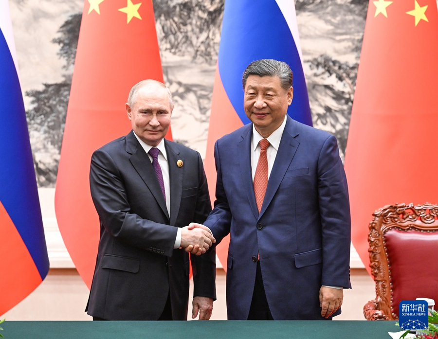 发表时间:2025-09-14 20:34 ![]() 5月16日上午,国家主席习近平在北京人民大会堂同来华进行国事访问的俄罗斯总统普京举行会谈。这是习近平同普京握手。新华社记者 鞠鹏 摄 新华社北京5月16日电(记者杨依军、王宾)5月16日上午,国家主席习近平在北京人民大会堂同来华进行国事访问的俄罗斯总统普京举行会谈。 5月16日上午,国家主席习近平在北京人民大会堂同来华进行国事访问的俄罗斯总统普京举行会谈。这是两国元首举行小范围会谈。新华社记者 李涛 摄 两国元首首先举行小范围会谈。 习近平对普京开启新一届总统任期表示衷心祝贺,对他再次来华进行国事访问表示热烈欢迎。 习近平指出,今年是中俄建交75周年。75年来,中俄关系历经风雨,历久弥坚,经受住了国际风云变幻的考验,树立了大国、邻国相互尊重、坦诚相待、和睦相处、互利共赢的典范。中俄关系稳定发展,不仅符合两国和两国人民的根本利益,也有利于地区乃至世界的和平、稳定、繁荣。中方愿始终同俄方做彼此信赖的好邻居、好朋友、好伙伴,不断巩固两国人民世代友好,共同实现各自国家发展振兴,携手维护世界公平正义。 习近平强调,中俄关系75年发展历史得出的最重要结论,就是两个相邻的大国之间,必须始终弘扬和平共处五项原则,相互尊重、平等互信、照顾彼此关切,真正为双方的发展振兴相互提供助力。这既是中俄两国正确相处之道,也是21世纪大国关系应该努力的方向。中俄关系有着深厚的历史积淀和坚实的民意基础,双方要密切战略协作和互利合作,坚定地走自己的发展道路,坚定维护国际公平正义。 普京表示,我很高兴在就任新一届俄罗斯总统后再次访华。去年3月习近平主席也在连任后不久即对俄进行国事访问。这是我们两国的友好传统,表明双方对加强新时代俄中全面战略协作伙伴关系的高度重视。今年是中华人民共和国成立75周年,也是俄中建交75周年,值得我们共同庆祝。发展俄中关系不是权宜之计,不针对第三方,有利于国际战略稳定。俄方愿同中方持续扩大双边合作,密切在联合国、金砖国家、上海合作组织等框架内沟通协作,推动建立更加公正合理的国际秩序。 5月16日上午,国家主席习近平在北京人民大会堂同来华进行国事访问的俄罗斯总统普京举行会谈。这是两国元首主持大范围会谈。新华社记者 张领 摄 两国元首随后主持大范围会谈。 两国元首听取了两国政府间各合作委员会双方主席汇报投资、能源、经贸、东北-远东、人文、国际等领域合作情况,对取得的进展表示满意,对未来合作建议表示肯定。 习近平指出,今年是中俄关系发展史上具有里程碑意义的重要年份。中俄建交75年来,两国携手走出了一条大国、邻国相互尊重、和睦相处、合作共赢的崭新道路。在双方共同努力下,中俄关系始终稳定向前发展,两国全面战略协作不断加强,经贸、投资、能源、人文、地方等领域合作持续推进,为维护全球战略稳定和促进国际关系民主化作出了积极贡献。今年是中华人民共和国成立75周年。中方正以高质量发展全面推进中国式现代化,加快发展新质生产力,并为全球经济增长增添新动能。中俄两国同为联合国常任理事国和主要新兴市场国家,双方加大战略协作,拓展互利合作,顺应世界多极化和经济全球化的历史大势,是两国共同的战略选择。双方应该以建交75周年为新起点,进一步加强发展战略对接,持续丰富双边合作内涵,更好造福两国和两国人民,为世界繁荣稳定贡献更多正能量。双方要进一步优化两国合作结构,巩固经贸等传统领域合作良好势头。打造更多人文交流亮点,共同办好“中俄文化年”,密切地方合作,持续拉紧民心纽带。加强在联合国、金砖国家、上海合作组织等国际多边平台以及地区事务中的沟通和协作,展现国际担当,推动建立公正合理的全球治理体系。 普京表示,俄中两国政府间合作机制运作良好,两国经贸、农业、工业、能源、互联互通等领域合作稳步发展。俄中关系的建立和发展,基于睦邻友好、相互尊重、助力各自国家发展等原则,经受住了各种考验。今天双方签署系列合作文件,表明双方继续深化拓展互利合作的决心。俄方愿同中方落实好《2030年前俄中经济合作规划》,办好今明年“俄中文化年”活动,加强欧亚经济联盟同共建“一带一路”倡议对接。明年将迎来世界反法西斯战争胜利80周年,俄中双方将举行庆祝活动。俄方赞赏中方在重大国际地区事务中秉持客观公正立场,愿同中方继续密切战略协作,坚定相互支持,促进世界多极化和国际关系民主化进程,推动俄中全面战略协作伙伴关系取得更多成果。 5月16日上午,国家主席习近平在北京人民大会堂同来华进行国事访问的俄罗斯总统普京举行会谈。这是会谈后,两国元首共同签署并发表《中华人民共和国和俄罗斯联邦在两国建交75周年之际关于深化新时代全面战略协作伙伴关系的联合声明》。新华社记者 饶爱民 摄 5月16日上午,国家主席习近平在北京人民大会堂同来华进行国事访问的俄罗斯总统普京举行会谈。这是会谈后,两国元首共同签署并发表《中华人民共和国和俄罗斯联邦在两国建交75周年之际关于深化新时代全面战略协作伙伴关系的联合声明》。新华社记者 饶爱民 摄 会谈后,两国元首共同签署并发表《中华人民共和国和俄罗斯联邦在两国建交75周年之