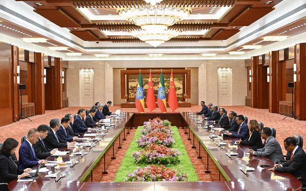 发表时间:2025-10-01 13:33 ![]() 2024年9月4日中午,国家主席习近平在北京人民大会堂会见来华出席中非合作论坛北京峰会并进行正式访问的埃塞俄比亚总理阿比。 习近平指出,埃塞俄比亚是非洲国家谋求独立解放和自主发展的榜样,中埃塞关系堪称中非友好合作的榜样。两国政治互信基础牢固,各领域合作不断迈向更高水平。中方愿同埃塞持续深化团结合作,推动两国全天候战略伙伴关系不断向前发展,为推动中非友好作出更大贡献。 习近平强调,长期以来,中埃塞两国始终坚定支持彼此捍卫各自核心利益,坚决反对外部势力干涉,锻造了坚不可摧的铁杆友谊。双方要做高度互信、共同发展、团结互助、文明互鉴的好伙伴,以高水平政治互信提升双边合作的战略性和引领性。中方支持埃塞战后重建和发展振兴,愿以此次中非合作论坛峰会为契机,扩大两国务实合作,支持埃塞发挥地区交通枢纽优势,推动基础设施建设同产业联动融合发展,打造东部非洲地区铁海联运网络和中非高质量共建“一带一路”合作示范区。中方愿同埃塞在地区层面和联合国、金砖等框架内加强沟通协作,推进落实“非洲之角和平发展构想”,共同维护国际公平正义。埃塞是中非合作论坛首任非方共同主席国,一贯支持论坛发展。中方愿同埃塞一道,推动此次峰会取得圆满成功。 阿比表示,很高兴再次访华并领略中国特别是北京将历史和现代化完美融合,这对于埃塞城市和现代化建设很有借鉴意义。中国对埃塞的政策充分体现了平等和相互尊重,双方关系是互利共赢的。中国企业的投资与合作为促进埃塞经济社会发展作出重要贡献。埃塞愿同中方继续坚定相互支持,希望以此次中非合作论坛北京峰会为契机,深化两国经贸、基础设施、工业、互联互通、安全等领域合作,助力埃塞实现稳定和发展,推动两国全天候战略伙伴关系取得更多成果。埃塞愿同中方密切在国际多边事务中沟通协作。 王毅参加会见。